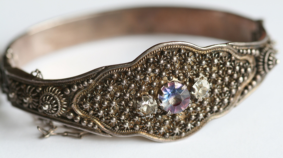 O avaliador examinou a pulseira cuidadosamente e com vagar. Finalmente, depois de muito tempo, voltou-se para nós, animado: